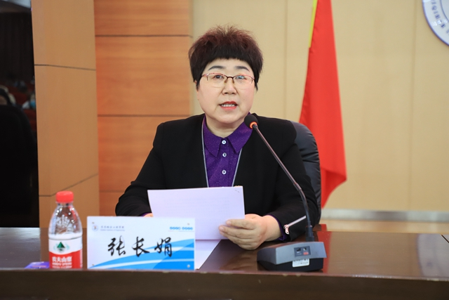 新任学校党委书记兼政府督导专员张长娟在大会上作表态发言。
