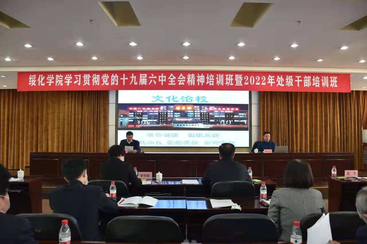 2月24日至25日,理事长曹勇安出席绥化学院十九届六中全会精神学习培训班暨2022年处级干部培训班,并作专题讲座,绥化学院校的领导与处级干部参加培训,科级干部、辅导员在分会场列席。