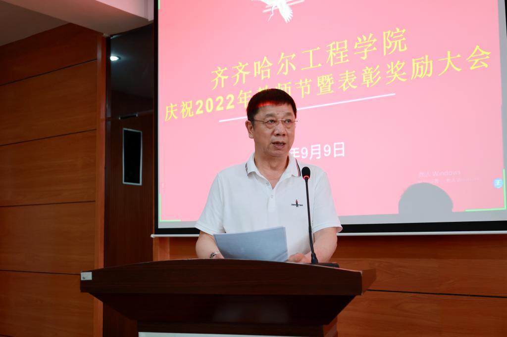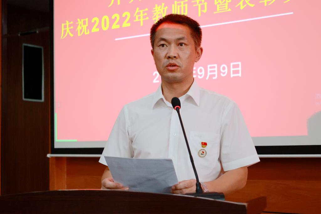 党委书记郭伟东宣读《开云kaiyun官方网站关于表彰奖励优秀教师、优秀教育工作者、师德先进集体、师德先进个人的决定》。