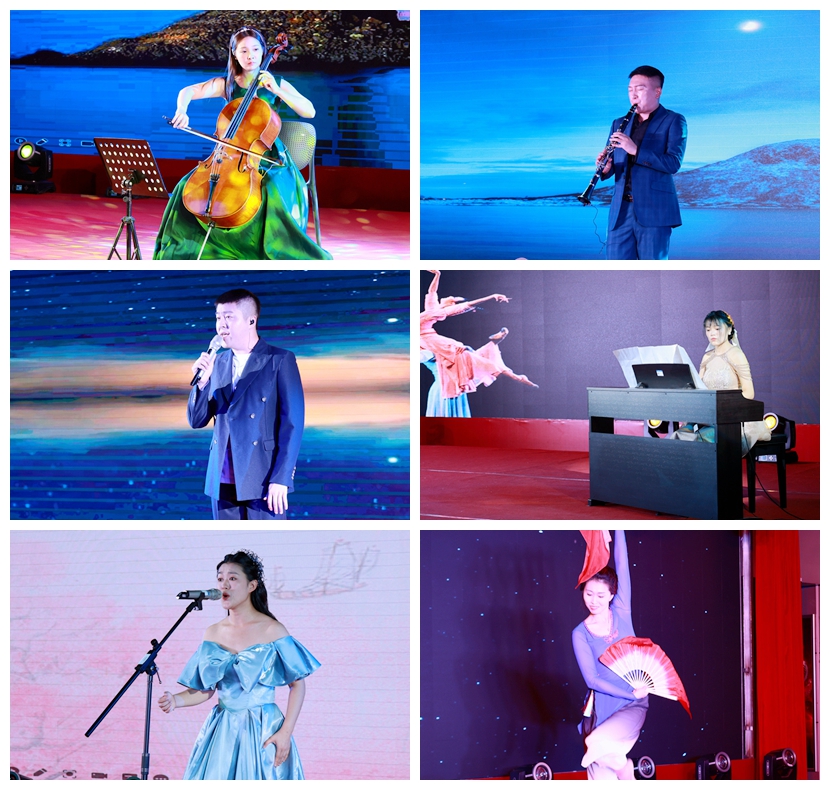 文艺汇演在钢琴独奏《太阳最红 毛主席最亲》饱含深情、唯美馥郁旋律拉开序幕。舞蹈《十送红军》《抬龙王》,舞者神态坚定,感情充沛,动作矫健有力,或跃起、或倒伏,点燃了在场观众的激情,仿佛把我们带进那激情的年代,如火的岁月,激励当代青年人追求卓越、实现抱负美声独唱《多蕾塔做了什么美梦》《青玉案·元夕》音色悦耳起伏婉转行云流水高亢的旋律穿云裂帛激励人心流行独唱《逝去的爱》歌独唱《越人歌》柔情似水,深情无限。