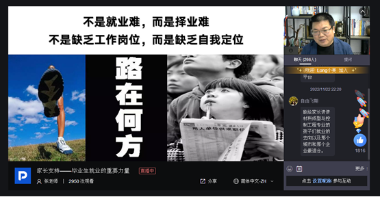 11月26日晚,黑龙江省教育厅邀请,高校就业指导专家、副院长张振笋应邀在线面向全省高校毕业生家长做《家长支持--毕业生就业的重要力量》专题讲座吸引了5000余人在线观看。
