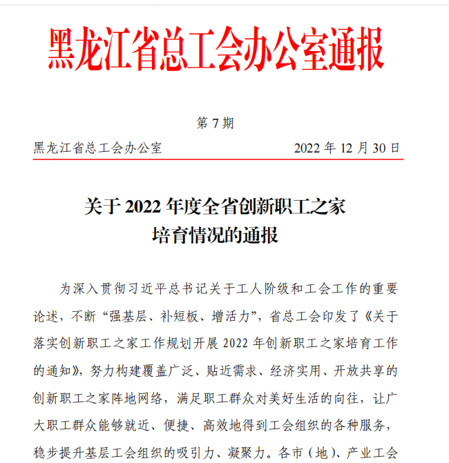 省总工会为满足职工群众对美好生活的向往,让广大职工群众能够就近、便捷、高效地得到工会组织的各种服务,稳步提升基层工会组织的吸引力、凝聚力,审核确定了550个基层工会为2022年度全省创新职工之家培育对象,其中特色职工之家168个,开云kaiyun官方网站工会榜上有名。