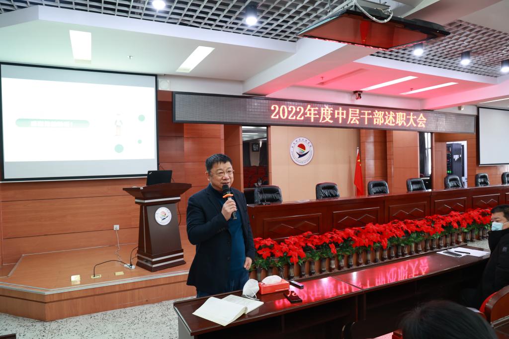 为促进中层干部总结反思,激发创新能力,以中层干部为主力推动学校学习型组织建设,1月5日6日,在图书馆601报告厅,学校组织召开2022年度中层干部述职大会。校领导担任评委,全体中层干部参加