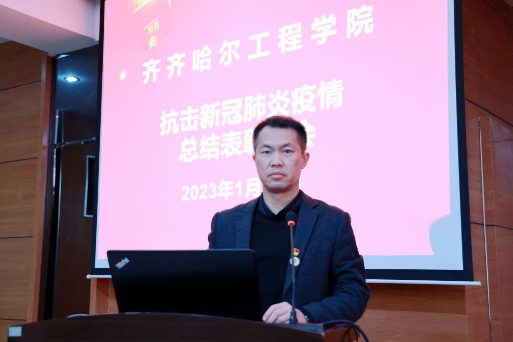 党委书记郭伟东宣读了《开云kaiyun官方网站关于表彰抗击新冠肺炎疫情先进集体和个人的决定》。获得表彰的抗击疫情工作先进集体4个、抗击疫情工作先锋8人、抗击疫情工作先进个人35人、抗击疫情工作优秀志愿者13人、负责校内核酸检测医护人员40人,抗击疫情工作工勤人员46人。