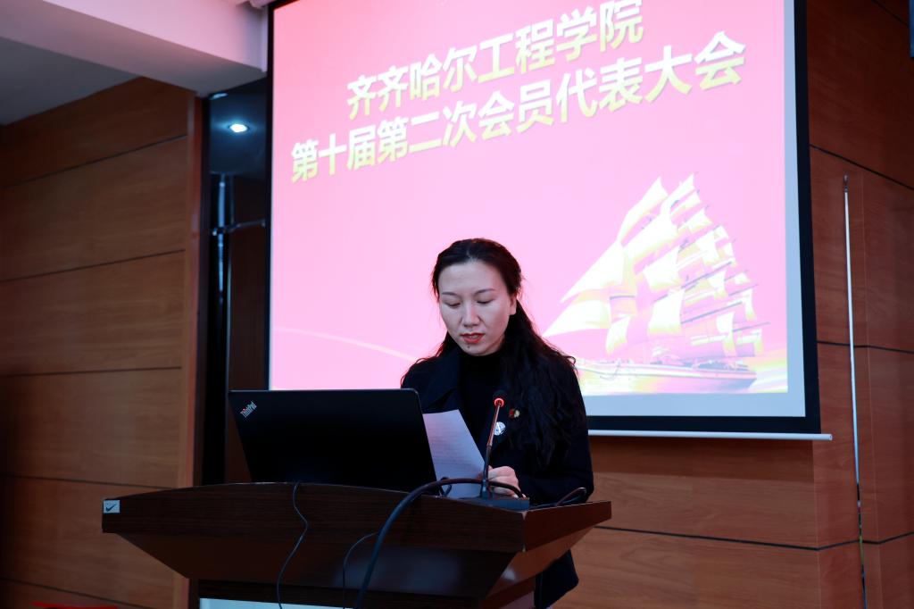 2月6日下午,学校工会第十届第二次会员代表大会在图书馆601报告厅隆重召开。122名工会会员代表参加会议校工会副主席王丽萍主持会议。