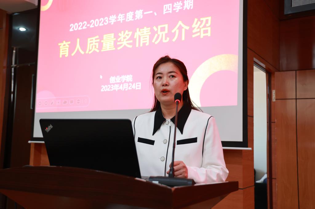 4月24日下午,学校在图书馆601报告厅召开第七届教育质量奖颁奖大会,理事长曹勇安、党委书记郭伟东、副院长白雪、教务长张静、院长助理陈景鑫出席会议,全面质量管理办公室主任孟艳辉主持,全体教职工参加。