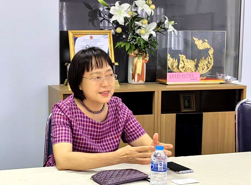 冯俊英参赞介绍了驻泰大使馆教育组参与建设的孔子学院,以及中文国际教育、留学生教育、国际合作与交流等情况。