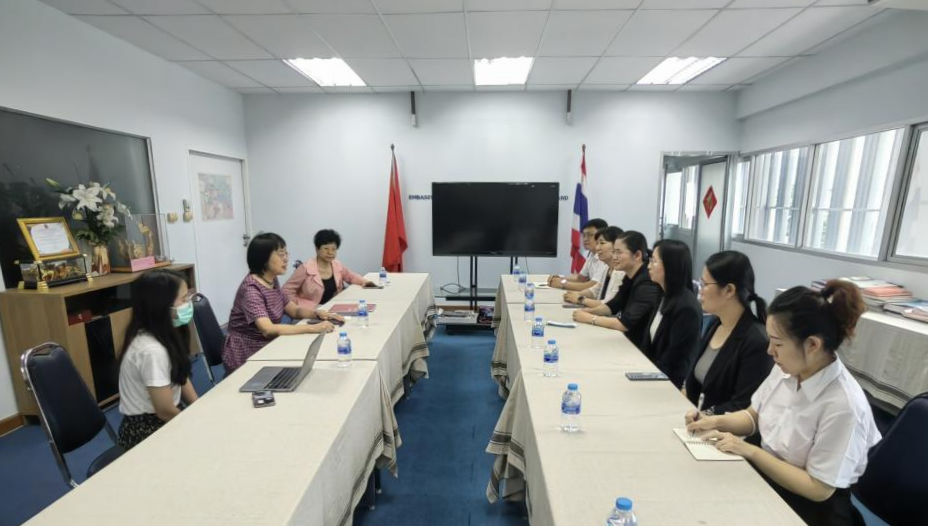 考察团一行在中国驻泰王国大使馆受到冯俊英教育参赞的亲切接见,参加交流的还有大使馆教育处一等秘书、北京邮电大学经济管理学院执行院长王欢教授。