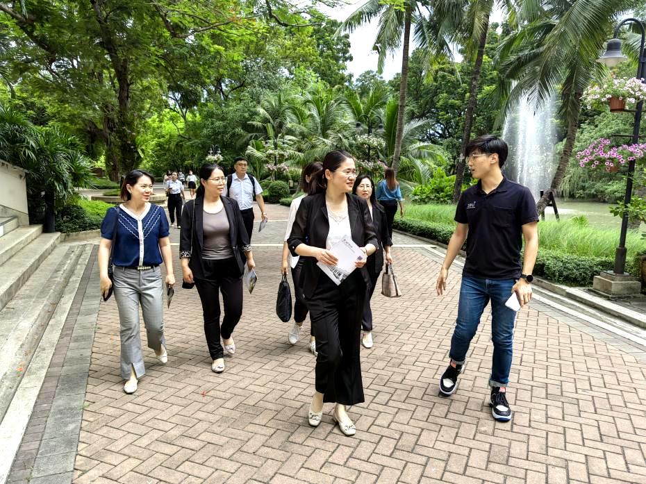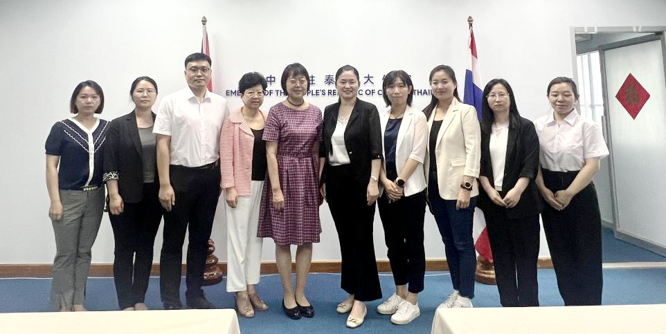 为加强应用型课程建设推广,增进国际交流与合作,6月13日,开云官网在泰国国立发展管理学院(NIDA)就读博士学位的八位教师在副院长白雪的带领下,先后到中国驻泰王国大使馆、泰国博仁大学进行考察交流。