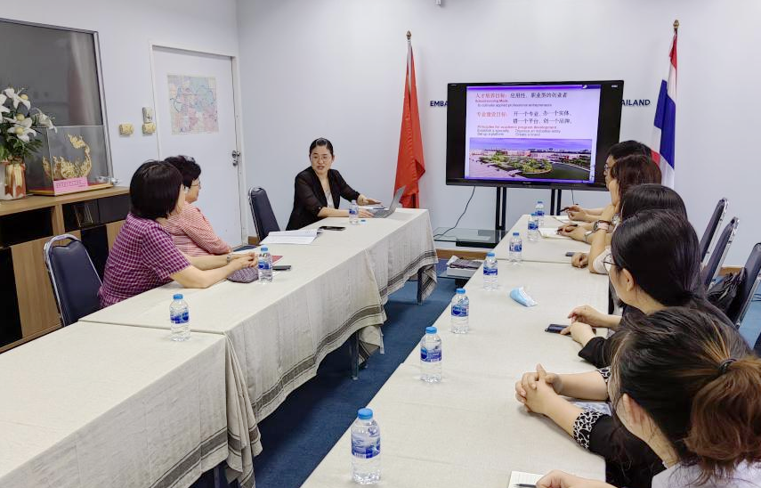白雪介绍了学校和应用型课程建设联盟发展情况,重点阐述了学校在应用型课程建设方面的探索实践,并简要回顾了学校与国外十余所院校的合作情况,表达了与泰国高校、课程研究学术机构交流合作的愿望。