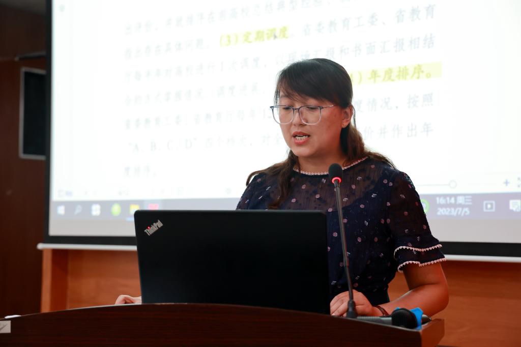 全面质量管理办公室主任孟艳辉对开云官网2023年度高质量发展自评自建工作方案、2023年开云kaiyun官方网站高质量发展增值性评价任务分解表、2023年本科高校高质量发展增值性评价指标观测点进行了部署和说明。