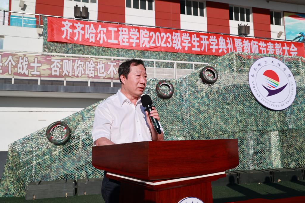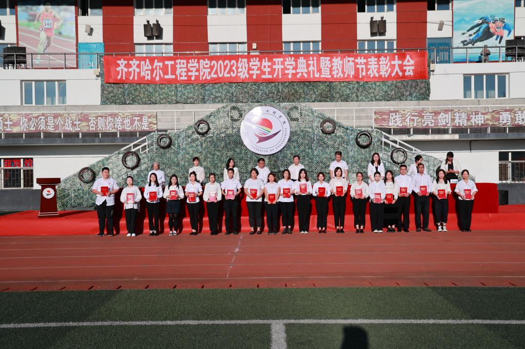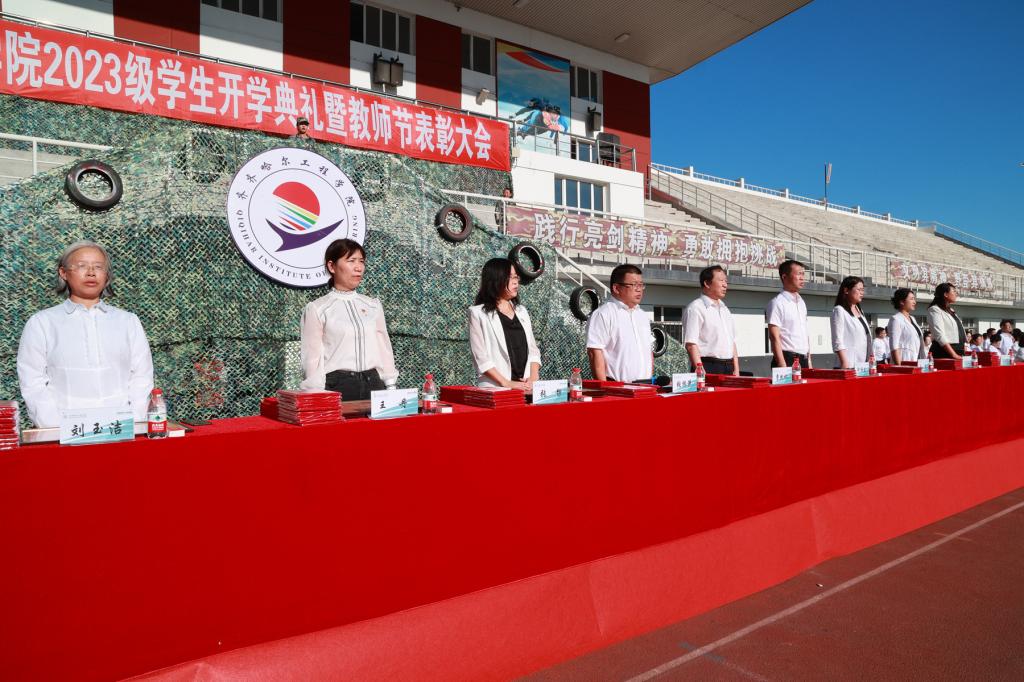 9月9日下午,2023级学生开学典礼暨“躬耕教坛,强国有我”教师节表彰大会在体育场举行,院长曹然彬、党委书记郭伟东、党委副书记张振笋、副院长白雪、副院长张静、院长助理陈景鑫及党委委员王丹、校务委员孟艳辉、理事会理事刘玉洁出席活动并在主席台就座。合作企业代表、各系领导、教师及全体2023级普本新生参加本次会议。