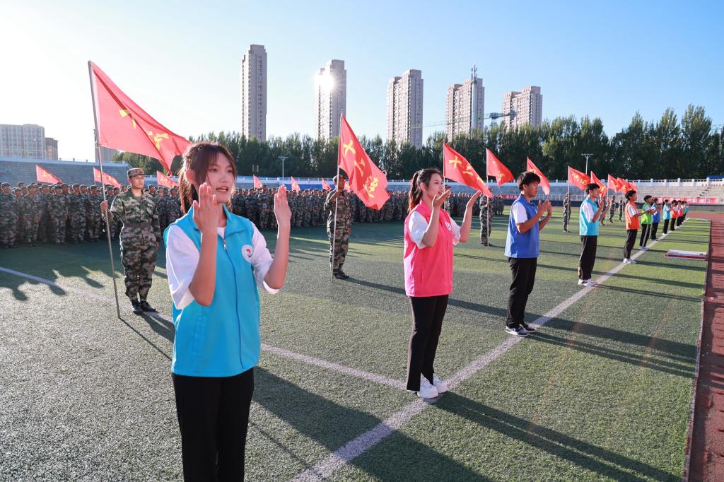 党委书记郭伟东宣读《关于表彰2023级学生军训先进集体及先进个人的决定》,对在本次军训工作中取得突出成绩的先进连队和先进个人予以表彰。机电工程系一营一连等10个连队被评为2023级学生军训优秀参训连队;建筑工程系三营十六连等6个集体被评为2023级学生军训内务检查先进集体;774名学生分获各项个人荣誉。