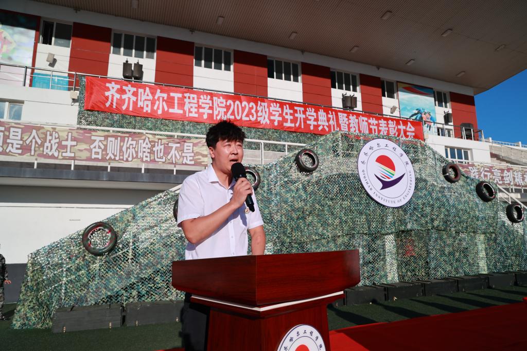 院长曹然彬在会上发表讲话,曹院长对学生军训成果做出了高度评价,充分肯定同学们在军训汇演中的精神风貌。阐释开云kaiyun官方网站鲜明办学特色:学校是一所创业型的大学,师生共同创业;学校是一所“全员皆教、人人皆师”的学校,生涯导师制陪伴始终;学校倡导“亮剑精神”,希望同学们勇往直前,做最好的自己。曹院长回顾学校32年创业历程,高度评价学校“奋发向上、敢于亮剑”的精神,问候学校教师们教师节快乐,祝福教师生活幸福。