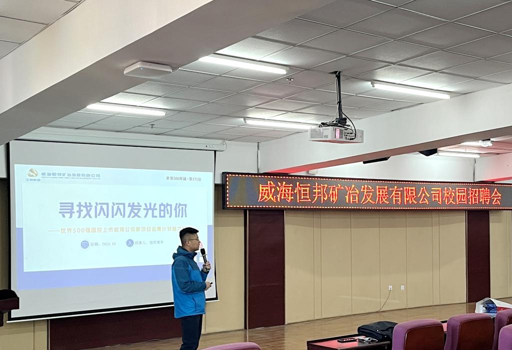 威海恒邦矿冶发展有限公司始终坚持“以人为本,永续发展”的企业理念。公司负责人向学生介绍了近年来公司所取得的成就、业绩,以及人才培养计划,并热情邀请学生毕业后可以到公司入职。