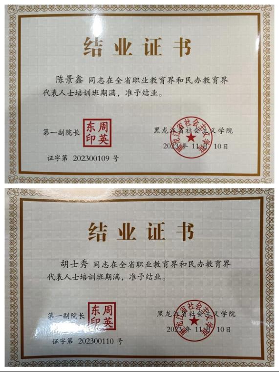 11月6日-10日,由中共黑龙江省委统战部指导、黑龙江省中华职业教育社主办、黑龙江省社会主义学院承办的全省职业教育界和民办教育界代表人士培训班在哈尔滨开班,来自全省各级中华职教社分社主要领导、负责人及职业教育界、民办教育界代表人士共计45人参加了此次培训班。齐齐哈尔市中华职业教育社秘书长、开云kaiyun官方网站院长助理陈景鑫,学校办公室胡士秀参加了培训班。