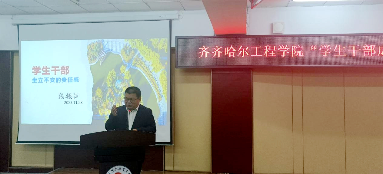 11月28日晚,校党委副书记张振笋在图书馆501报告厅为学生干部作关于“学生干部的责任意识”的培训。他强调,责任心是一种态度,学生干部必须拥有这种责任感,以“无我”的境界奉献自己,锻炼自己。学生干部应以身作则,充分发挥带头作用,积极推动学校的学风建设。