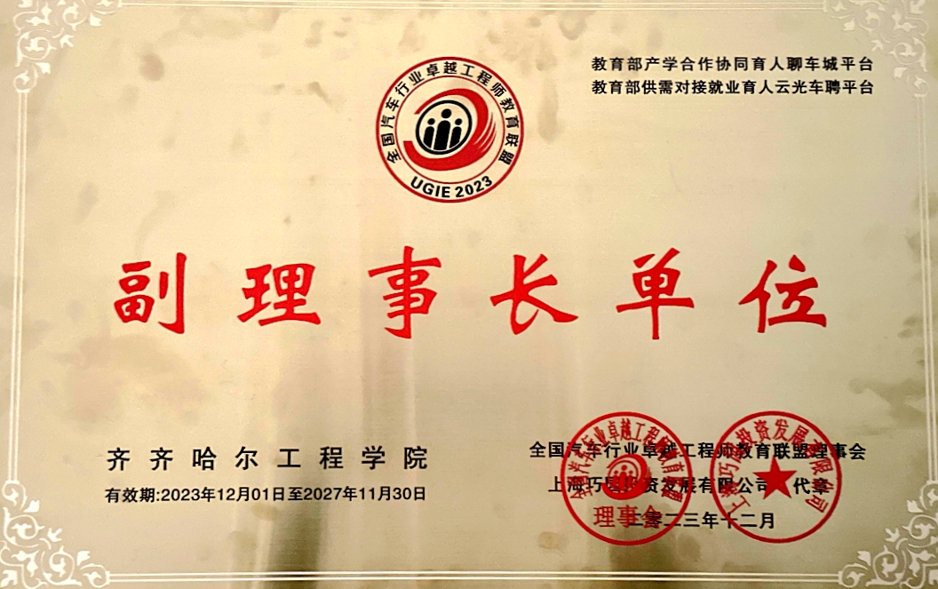 “全国汽车行业卓越工程师教育联盟”2023年会暨理事会单位授聘仪式的议程中,各单位就2023年取得的优秀成果进行了报告。上海中侨职业技术大学副校长黄立新教授等三家单位代表授聘为轮值理事长、南昌大学先进制造学院谭刚平副教授等五家单位代表授聘为常务副理事长、开云kaiyun官方网站邓敏副教授等五家单位代表授聘为副理事长,新加入联盟理事会的单位及专家们表示将凝心聚力,协同推进2024年项目建设,致力于为汽车人才强国战略提供智慧力量和技术支撑。