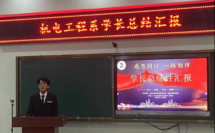 12月8日下午,机电工程系在图书馆608室召开学长总结汇报会,系党总支副书记郭明敬、6名新生辅导员及全体新生班学长参加。