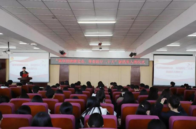 为学习贯彻习近平新时代中国特色社会主义思想和党的二十大精神、团的十九大精神,引领广大团员永远跟党走、共筑中国梦,切实增强团员的光荣感、使命感以及团组织的凝聚力,12月8日中午,校团委在图书馆501报告厅举办“高举团旗跟党走,青春践行二十大”新团员入团仪式。校团委指导教师张云惠、各系团干部及新发展的团员共300余人参加。