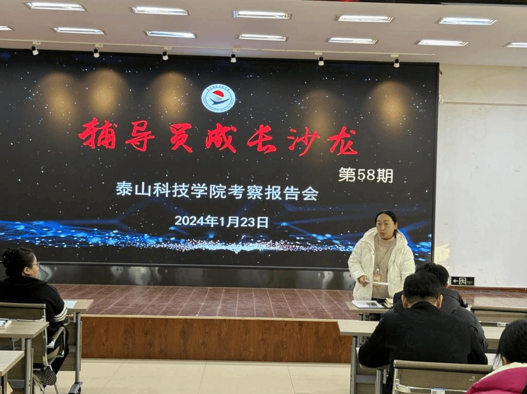 1月23日下午,第58期辅导员成长沙龙在学校2号教学区2508会议室举办,主题为“泰山科技学院考察报告会”。学生工作处负责人王丽萍、各系党总支副书记、全体辅导员、学生工作处人员参加会议。