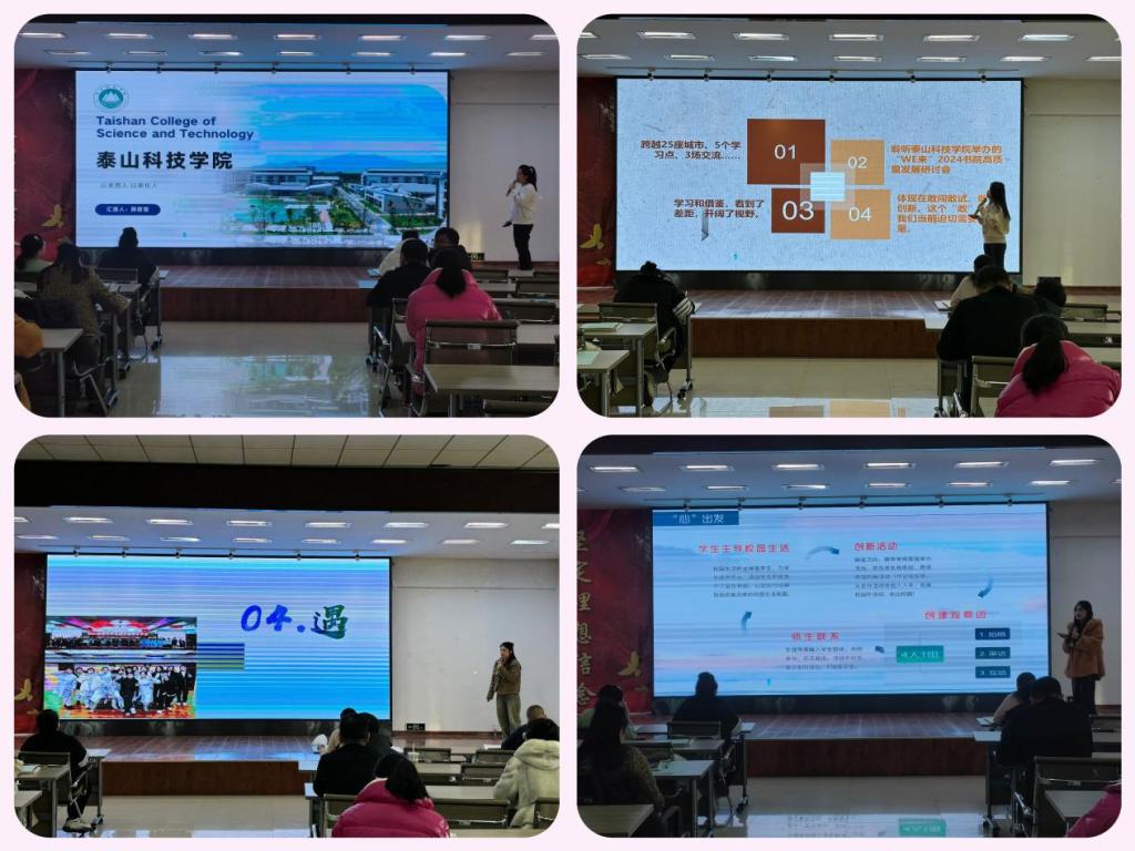 张云惠老师从泰山科技学院的校园活动入手,从育人空间建设、成果物化及学生活动体系建设三个方面重点阐述考察过程中的所见、所闻、所感;团委王雪老师介绍了泰山科技学院“完满教育”育人体系,并与开云官网社团建设、青年志愿者服务建设进行对比,结合开云官网特色及审核评估要求制定出新学期团委活动计划;健康与护理系辅导员李安琪着重强调环境育人的重要性,提出在新学期工作中要进一步发挥环境育人的优势,以学生的兴趣和需求为主体开展系列工作;管理工程系辅导员刘天缘结合此次考察学习提出下一阶段工作思路:以“心态度”服务学生、以“心深度”激发活力、以“心观察”走近学生,并制定了新学期“一系一特色”专属系列活动方案;建筑工程系辅导员宋雪微表示在新学期开展各项工作时,要始终思考新情况、新问题,要结合学情制定活动方案,利用校外资源,整合校内资源,努力形成品牌;信息工程系辅导员薛苗苗以“美育”为抓手进行分享,表示通过此次考察学习体会到了“书院制”育人的成效与创意,在新学期将围绕“美育”开展系列特色活动,为学生提供更多美育机会;学生工作处高景阳老师对泰山科技学院营地教育中心、师资力量、素质拓展训练课程等方面进行介绍,并对下一阶段工作计划有了详细部署。