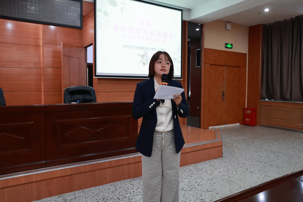为庆祝第114个“三八”国际劳动妇女节,3月7日,健康与护理系党总支特邀齐齐哈尔民康医院心理科主任王彦军为全校女性师生进行《女性身心健康与自我成长》专题讲座。讲座在图书馆601会议室举行,由护理系党总支书记张林琳主持,全校200多名师生参加。