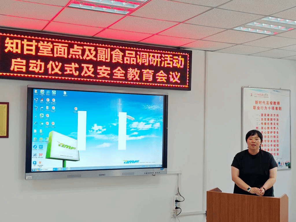 7月17日下午管理工程系在二号教学区2209会议室举办“知甘堂”面点及副食品调研活动启动仪式暨安全教育会。总务处副处长宋兴蕾管理工程系主任助理于骁晗、系党总支副书记王丽伟、食品科工作人员杜飞以及参与调研活动的指导教师学生参加