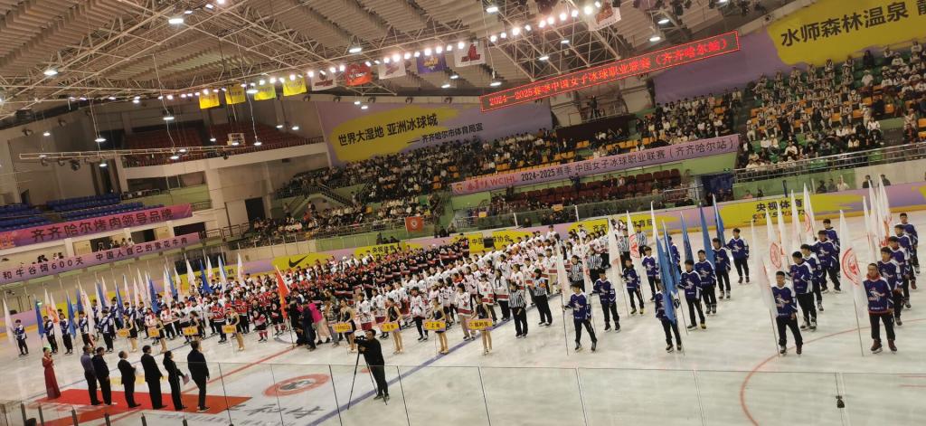 9月1日晚,学校齐工产教集团副总经理崔晓东、大学体育教研室课程长于壮带领120余名师生前往齐齐哈尔市黑龙体育馆,参加2024——2025赛季中国女子冰球职业联赛开幕式。