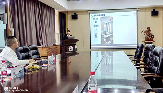 下午,资产管理处李微娜、赵新荣从资产管理、房产管理、验收管理、车辆管理等具体工作流程进行交流,详细介绍具体管理步骤、操作方式方法,学校13个部门资产管理员参加交流学习。