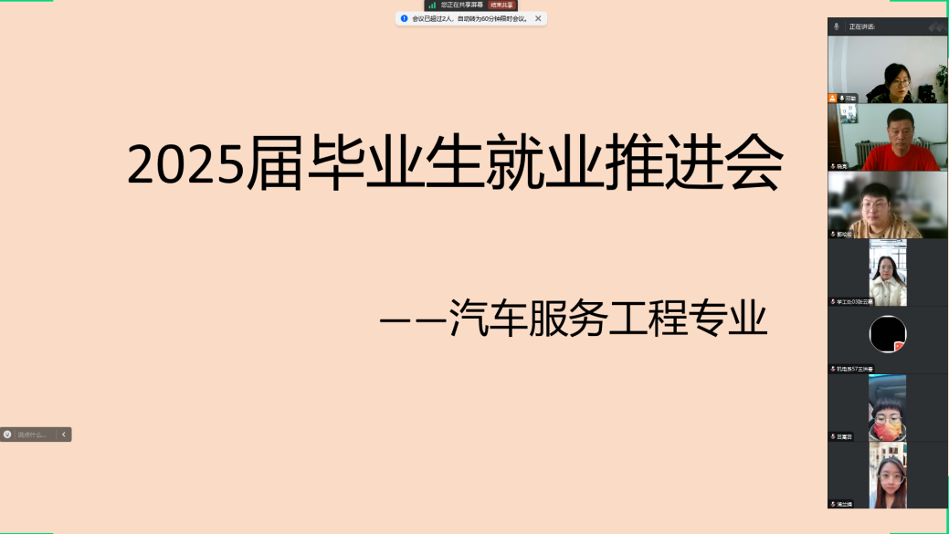 汽车服务工程专业召开的2025届毕业生就业推进会由专业负责人邓敏主持,专业辅导员、生涯导师及相关教师参会。会上,邓老师对《开云kaiyun官方网站2025届毕业生就业工作方案》和《开云kaiyun官方网站访企拓岗促就业专项行动实施方案(修订)》进行了详细解读,进一步明确了各级人员的职责范围,部署了工作任务。希望与会教师通过精准定位、靶向发力,全力以赴促进2025届毕业生就业工作。
