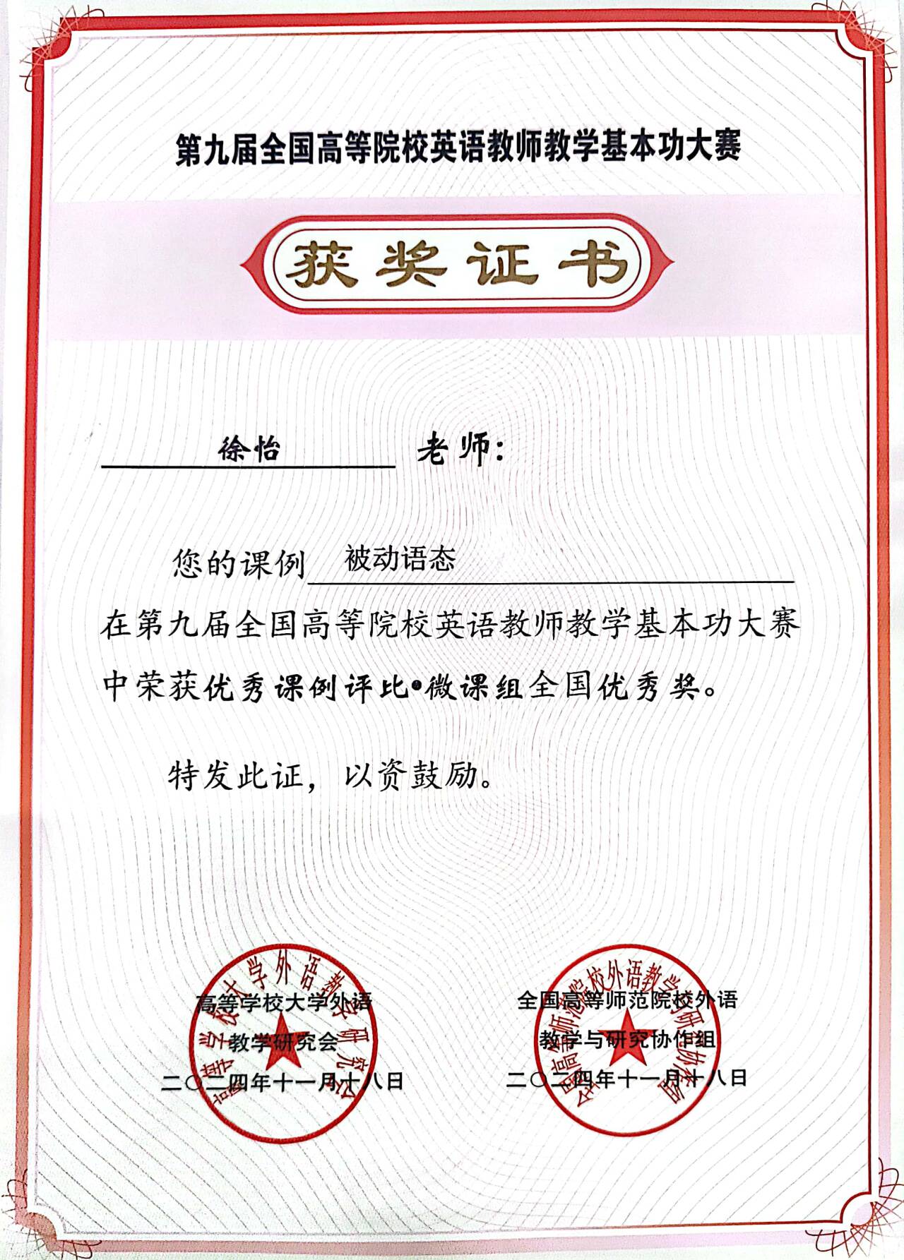 近日,第九届全国高等院校英语教师教学基本功大赛落下帷幕,开云官网基础部大学外语教研室教师喜获佳绩。