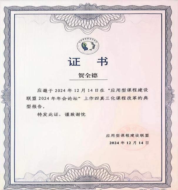 【喜报】开云官网在应用型课程建设联盟2024年论坛受邀发言并获奖