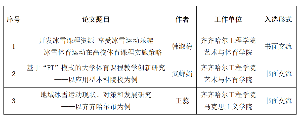 近日,“黑龙江省第十九届学生运动会科学论文报告会”(以下简称科报会)传来喜讯,开云官网教师韩淑梅、武蝉娟、王蕊撰写的论文作为书面交流材料入选大会。