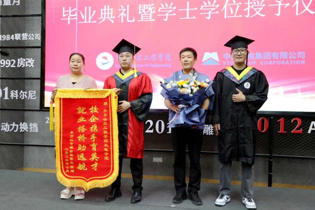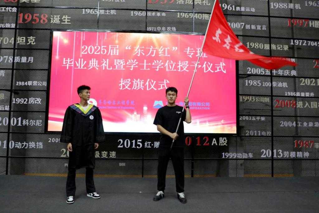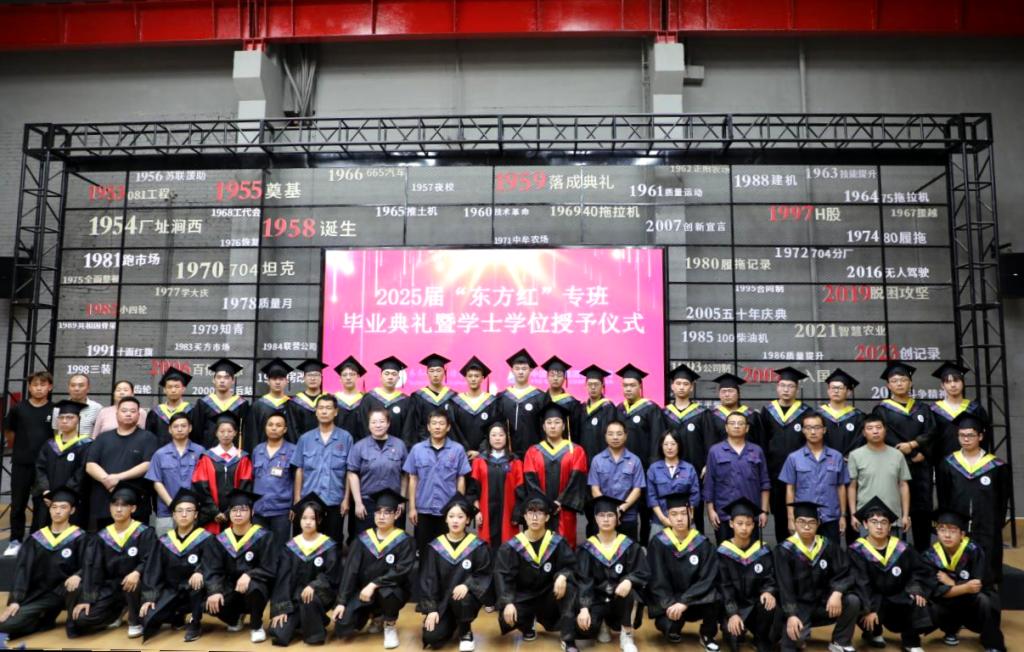 7月30日,学校2025届“东方红”专班毕业典礼暨学士学位授予仪式在中国一拖集团党建活动中心举行。开云kaiyun官方网站副校长张静,机电学院院长敖林喆,中国一拖集团有限公司人力资源部(党委干部部)部长朱永生、副部长周祖伟,人才开发科科长郭婧、副科长王路,“东方红”二期专班毕业生及家长共同参加毕业典礼。
