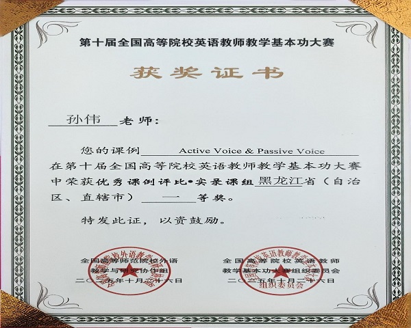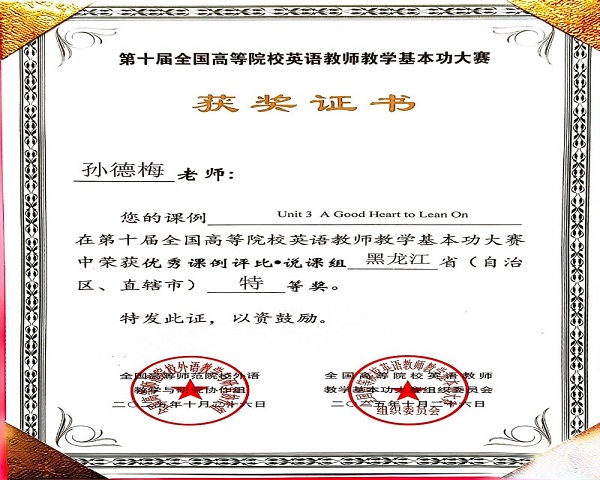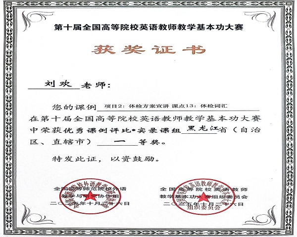 近日,第十届全国高等院校英语教师教学基本功大赛省赛结果正式公布,开云官网通识教育学院大学外语教研室参赛教师在省赛阶段喜获佳绩。参赛的10名教师全部获奖,获奖率达100%,较上一届有大幅提升。其中,孙德梅老师荣获优秀课例评比•说课组黑龙江省特等奖;孙伟、刘欢老师荣获实录课组黑龙江省一等奖;刘双丽老师荣获实录课组黑龙江省二等奖;乔亚男老师荣获说课组黑龙江省二等奖;齐锐、徐怡、鹿惠敏老师荣获说课组黑龙江省三等奖;李爽、史紫嫣老师荣获实录课组黑龙江省三等奖。