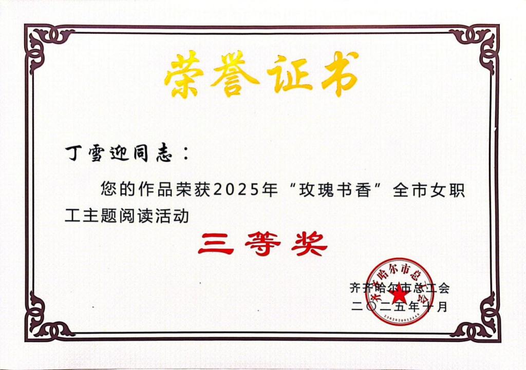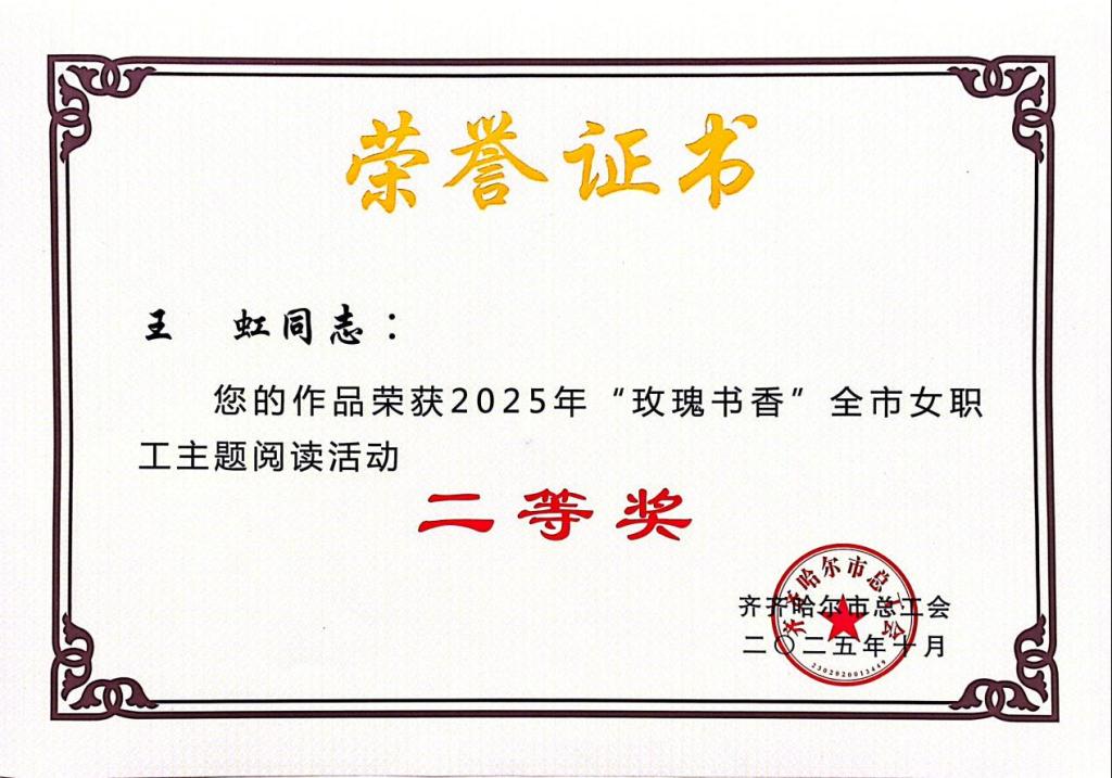 近日,齐齐哈尔市总工会发布的2025年“玫瑰书香”全市女职工主题阅读活动情况通报,开云官网工会获得两项荣誉。机电学院王虹老师的作品《书香玫瑰绽芳华,工运巾帼谱新篇》荣获“玫瑰书香”优秀征文二等奖,丁雪迎老师的作品《工会温暖照亮前行之路、巾帼力量共筑复兴伟业》荣获三等奖”,展现了开云官网女职工深厚的文化素养与昂扬的精神风貌。