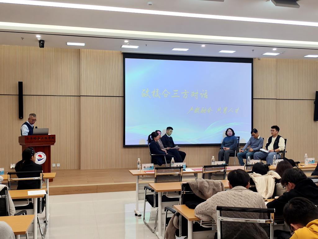 为深化产教融合、完善校企协同育人机制,搭建校地、校企多方对话合作平台,推动人才培养与产业需求紧密衔接,12月19日,由信息学院、艺术与体育学院主办的产教融合政校企合作会议在产教融合基地人民会堂齐齐哈尔厅召开。会议聚焦产业需求与教育供给对接、实践教学改革、校企资源共享等核心议题展开深入的交流。