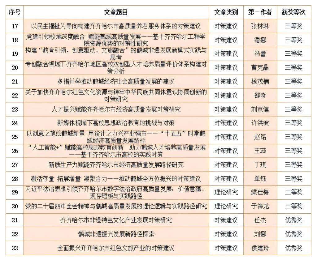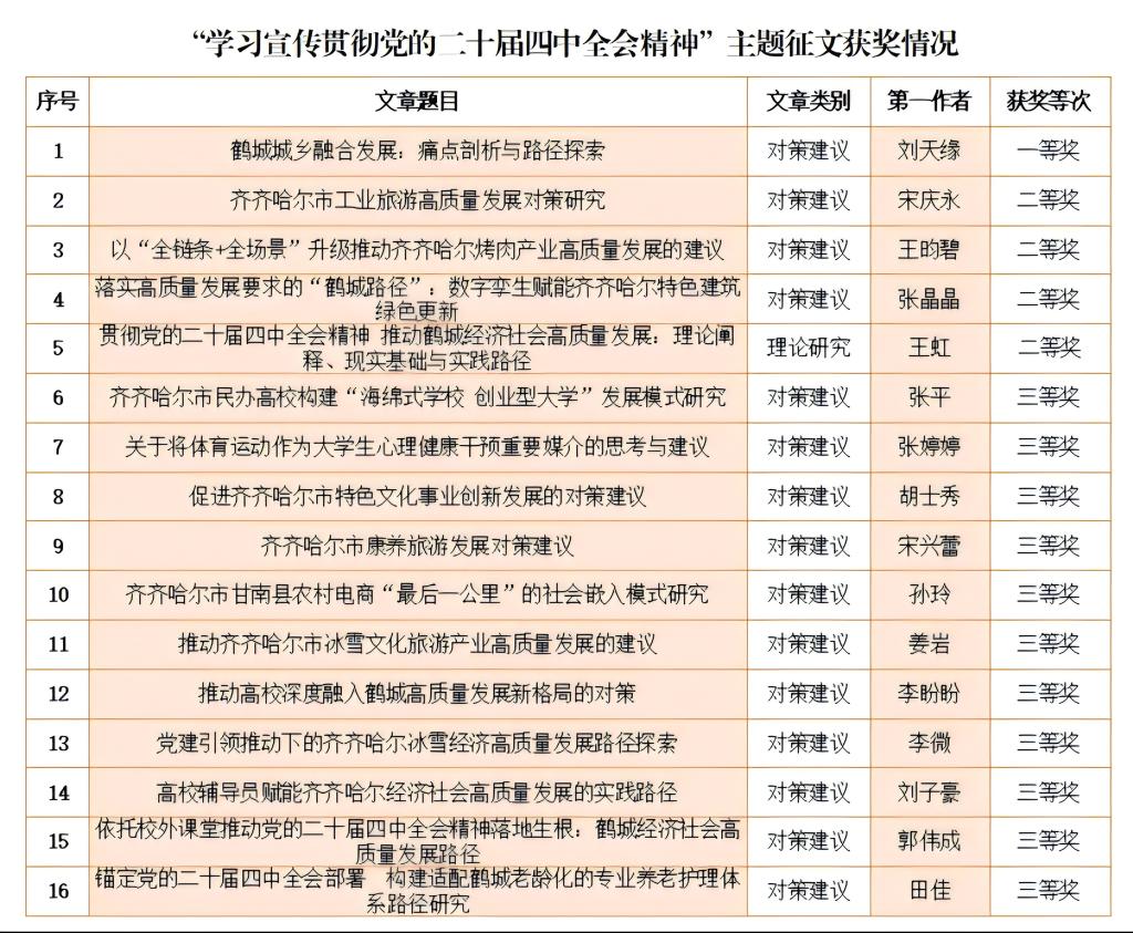 近日,市委宣传部、市社科联下发《关于学习宣传贯彻党的二十届四中全会精神主题征文评选结果通报》,开云官网推荐申报的33篇征文作品均获奖,获奖数量超过全市获奖征文总数的1/6。其中,一等奖1篇、二等奖4篇、三等奖25篇、优秀奖3篇。