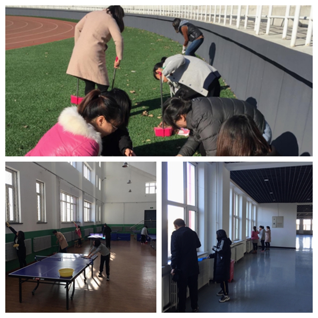 1012日,基础部党支部组织全体党员开展志愿服务活动,大家带着拖把、扫帚、抹布、垃圾袋、铲子、水桶等工具,来到体育场、羽毛球场、乒乓球馆,捡垃圾、擦玻璃和窗台,在劳动中践行为人民服务宗旨,加深对“不忘初心、牢记使命”重要意义的认识。