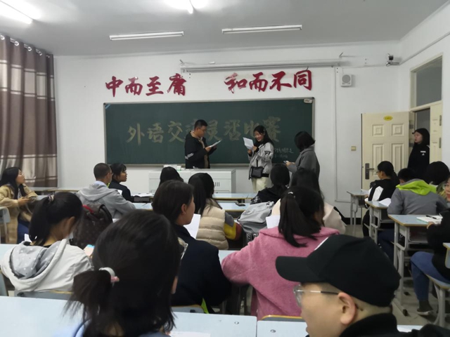 1011日,健康与护理系团总支组织了外语交流 灵活运用情景对话表演比赛,20198个班级的部分同学参加。比赛以分角色表演、情景对话方式进行,同学们自由组队并进行表演。比赛中,台上的同学表演精彩,台下同学掌声不断。通过比赛,锻炼了同学们的英语口语运用能力和团队协作能力。