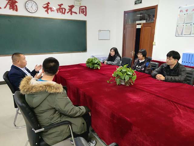 1015日晚,机电工程系学生工作负责人孙晓芳对学长助学社团工作进行指导。他为学长助学社团社长安东、系学生会学习部长王昕红等4名社团干部讲解了如何更好地助力同学们的学习,强调要切实以助力学习的初心来举办社团活动,并指出之前社团活动中存在的不足,提醒社团干部在讲解学习方法时要注意实用性与讲解技巧。