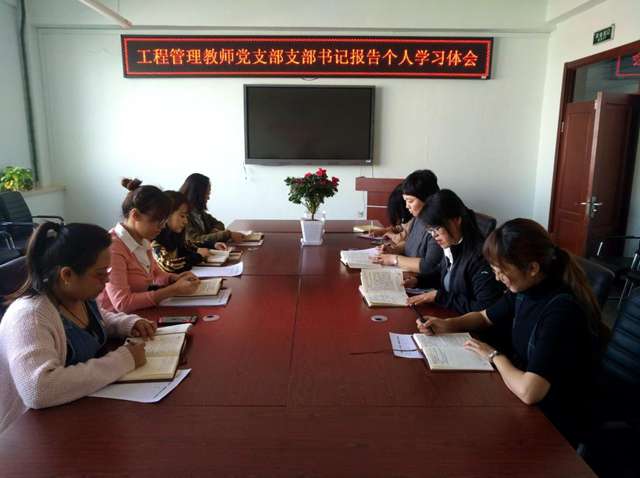 10月23日上午,工程管理专业教师党支部“真学、真信、真做”读书小组召开学习交流会,支部书记张好徽就如何做一名合格的党支部书记向党员汇报,党员也分别结合学习内容交流分享感悟和体会,表示在今后的工作和学习中继续努力,不忘初心、牢记使命,争做优秀共产党员。
