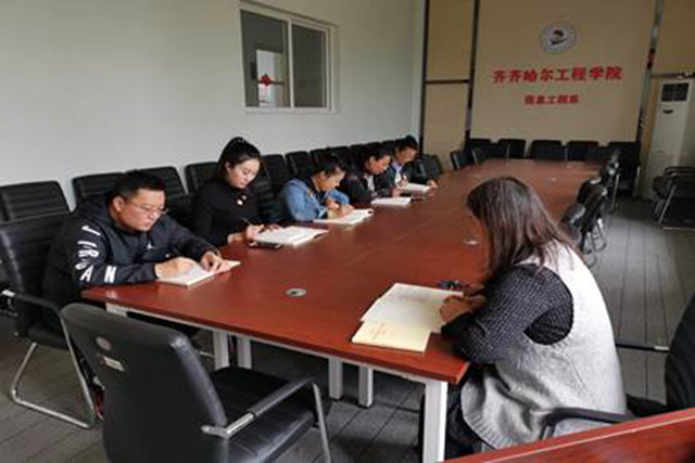 11月12日下午,机电工程系党总支书记高爱利主持学习讨论会并带领党员学习《认真学习党章 严格遵守党章》《中国梦 复兴路》《关于坚持和发展中国特色社会主义的几个问题》的部分内容。在随后的讨论中,系党总支书记高爱利分享了自己学习《关于坚持和发展中国特色社会主义的几个问题》的体会;系党总支副书记孙晓芳分享了自己学习《认真学习党章 严格遵守党章》的体会;系党总支组织委员黄颖就自己对《中国梦 复兴路》的学习并结合王文谨教授课程建设讲座,分享自己对教育工作者的初心和使命的理解。