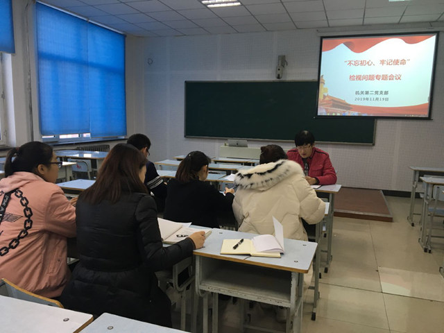 1119日下午,机关第二党支部召开不忘初心、牢记使命检视问题专题会。支部书记陈刚传达学院党委不忘初心、牢记使命主题教育第三次推进会精神,并带头对照党章规,从思想、政治、作风、能力、廉政方面,特别是从主观上、思想上深入剖析,找差距查原因,各位党员也结合自身工作查摆了自身问题并制定整改措施。