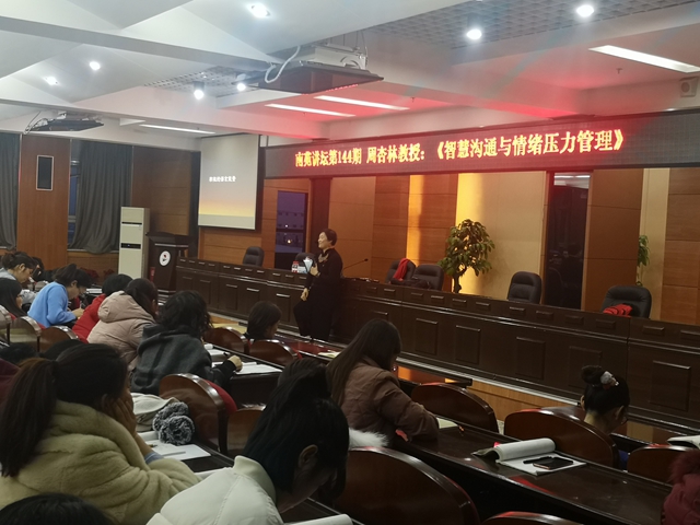 12月2日,全国知名心理学专家、江苏大学周杏林教授应邀来校,为师生做团体辅导和专题讲座。