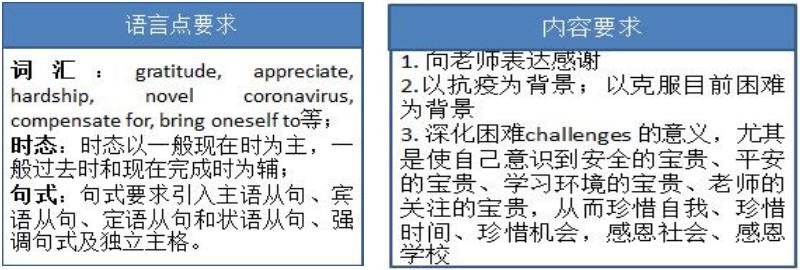 三是在线课程思政,意义深化。为加强学生对本篇课文“战争话题”背后关于“和平、幸福、亲情、珍惜”等意义的深入理解,我在线给学生布置任务,题目要求是:给自己的辅导员或任课教师写一封感谢信,运用课内所学词、短语、句式,注意按照四级作文写作标准。内容要求是:以疫情防控为背景,简述当前形势;感谢事由以学习、生活、做人等方面受到的帮助为切入,运用矛盾对(challenges & benefits)观点;注意规范感谢信内固定表达。在规定时间内,让学生先按照要求与理解构思感谢信的内容架构与写作方向,同时对其进行思想深度上的指导。在此过程中,要求学生能够结合自己专业实际展开,强化对专业的“爱”。