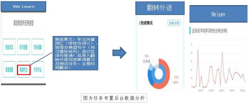 We Learn、U 校园和翻转外语等多平台的综合运用,使得学生在自学的过程中能够利用充足的资源按需而取,因而学生可做到课前准备充分,课中学习与互动高效、有深度,学习目的明确,学习劲头足,有助于形成良好的学风。多个平台的综合运用,让学生在课前、课中和课后都能获得必要的学习资源,教师也能够实现课前、课中和课后对学生的全程指导,更好地为学生学习服务。下一步在线教学中,将形成学习任务清单,以翻转课堂的形式,让学生结合自己的专业进行《大学英语 II》话题的学习,并且以“分”为抓手进行督促引导,加强学生学习效果的反馈。