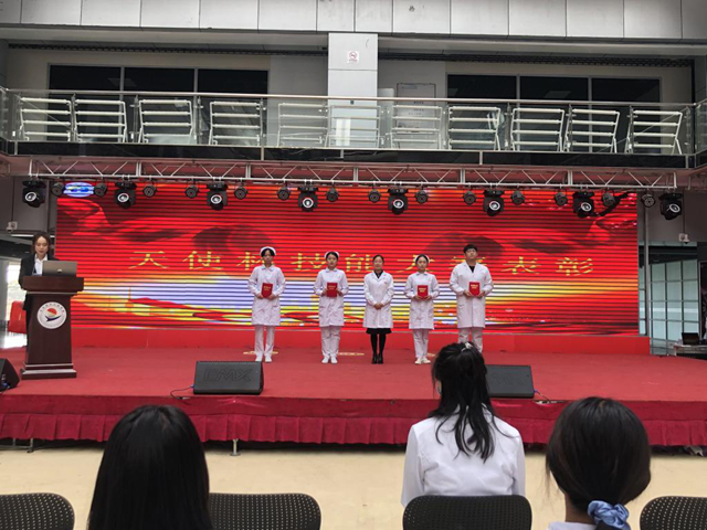在线上教学期间,健康与护理系举办“天使杯”技能大赛,全系学生踊跃参加6个项目的比赛,系领导在会上为获奖的49名同学颁奖。