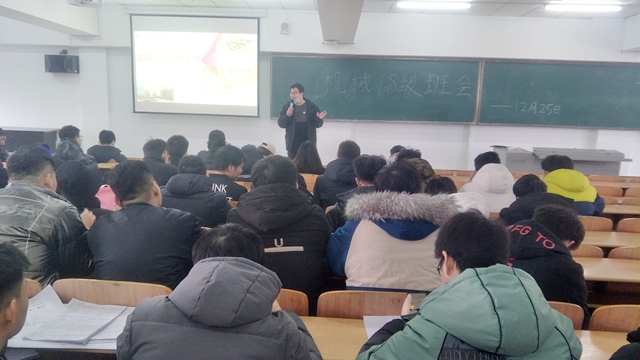 12月7日,机电工程系辅导员张勇召开考纪考风主题教育班会,围绕“诚信”进行讲解,张勇老师理论结合实际,教育同学们如何做一个诚实守信的人,并与学生就这个话题进行了交流,同学们发表自己对诚信的认识和看法,张勇老师对班会做了总结,并祝同学们取得优异成绩12月18日,辅员张勇召开了“放假安全教育”主题班会,要求同学们订好车票后,将行程上报学校要完善钉钉个人信息及时上报情况,由于新冠病毒肺炎疫情原因,开学时间暂且未确定,请同学们离校时带好所需的书籍和物品,假期不提前返校注意自身安全,提高了同学们的安全防范意识